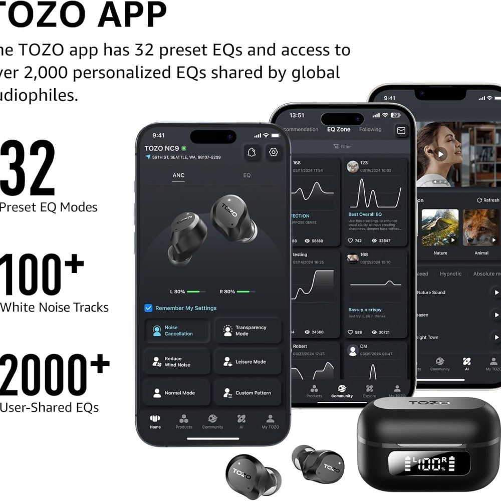 Introducing the TOZO Hybrid Active Noise Cancelling Wireless Earbuds, the ultimate audio companion for music lovers and tech enthusiasts alike. Featuring 10mm drivers for deep bass stereo sound, these earbuds deliver a rich and immersive listening experience like never before. Equipped with 4 microphones and Smart ENC AI technology, these earbuds ensure crystal-clear calls with…