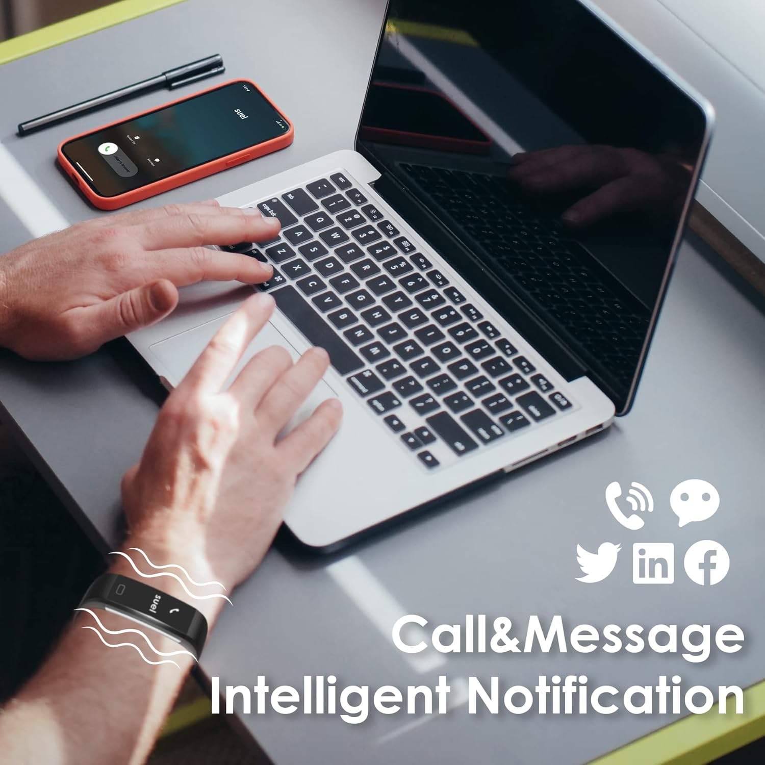 Compatible with both Android and iOS phones, this fitness tracker watch seamlessly syncs with your smartphone to deliver notifications for calls, texts, and social media alerts right to your wrist. Stay connected and informed without having to constantly check your phone.